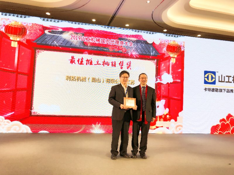 2019年01月18日,卡特彼勒旗下山工品牌在厦门举行代理商年会。710公海寰宇机械集团旗下代理山工品牌的利拓机械凭借在江苏和上海市场取得的骄人业绩,荣获2018年山工代理商推土机和平地机销售台量和市场占有率第一名的荣誉称号。