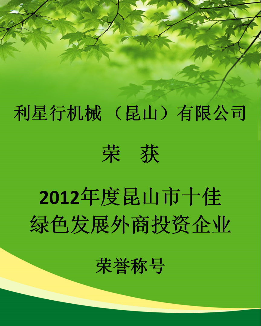 710公海寰宇机械昆山荣获十佳绿色发展外商投资企业荣誉称号