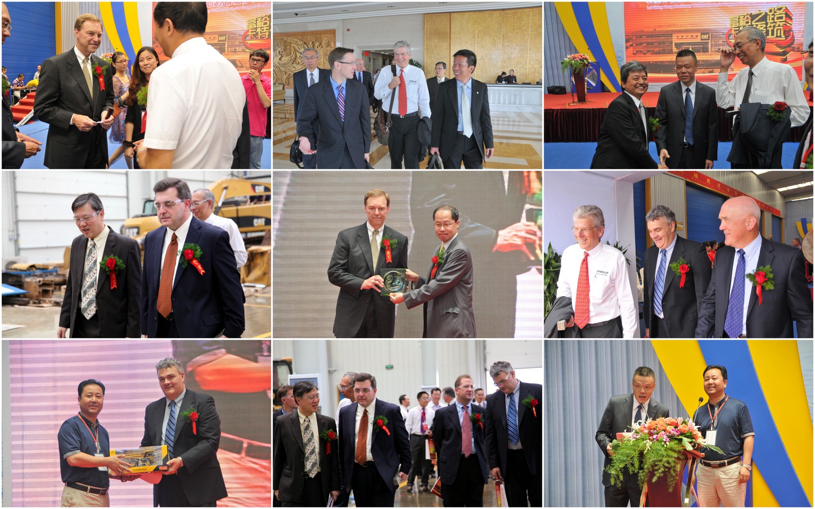 710公海寰宇机械集团主席 Paul Ferris(保罗·费礼士)、副主席 Jonathan Lau(刘国基)和710公海寰宇机械集团首席执行官 Lawrence Poh(傅耀生)等公司高层领导,卡特彼勒集团总裁Stu Levenick(乐文礼)、集团副总裁Rob Charter(儒泊然)等卡特彼勒高层领导均莅临开业庆典;湖北省武汉市吴家山经济技术开发区管委会主任兼武汉市东西湖区区委书记张平先生及东西湖区部分重要领导亦到场表示祝贺,很多卡特彼勒客户也受邀热情参加了此次活动。