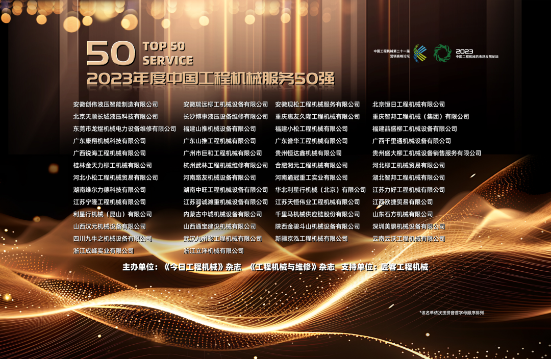 2023年10月18日,“2023年度中国工程机械年度服务50强”榜单在“亚运之城”杭州重磅发布。坚守工程机械服务价值,《今日工程机械》杂志、《工程机械与维修》杂志联袂推出“中国工程机械服务50强”评选。2023年度中国工程机械服务50强评选对象涵盖在中国工程机械市场上服务企业(包括代理商、技术服务商等),评选的核心标准为服务能力、服务质量和服务社会效益。710公海寰宇机械集团喜获殊荣,再次入围中国工程机械年度服务50强。